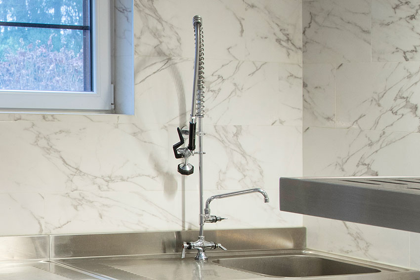 • Encore Vorwaschbrause mit Mischbatterie und Schwenkauslauf
