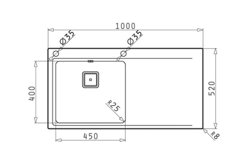 Dessus de plonge maronia 1000x520mm - 1xcuve 450x400x200mm/égouttoir droite