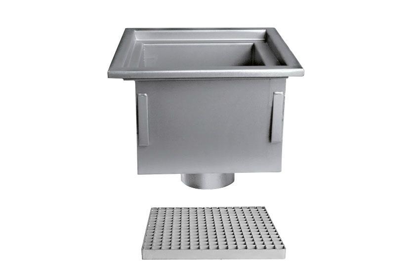 Siphon en inox 300x300mm - sortie verticale 125mm