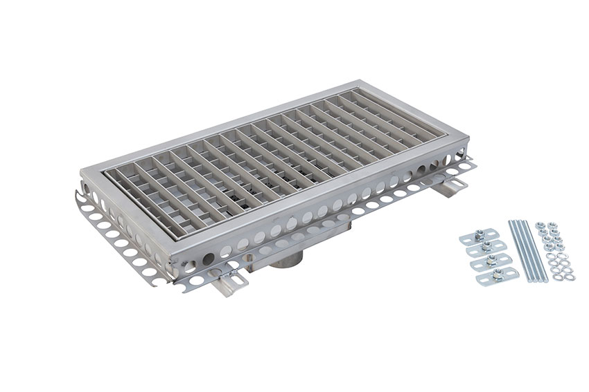 Caniveau de drainage inox 600x300mm - sortie centrale ø75mm vertical