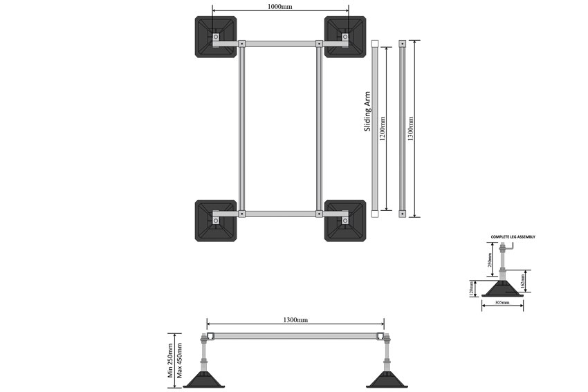 - Voethoogte van 250 tot 450 mm